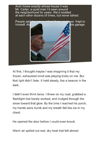 snow toward that glow. By the time I reached his porch,